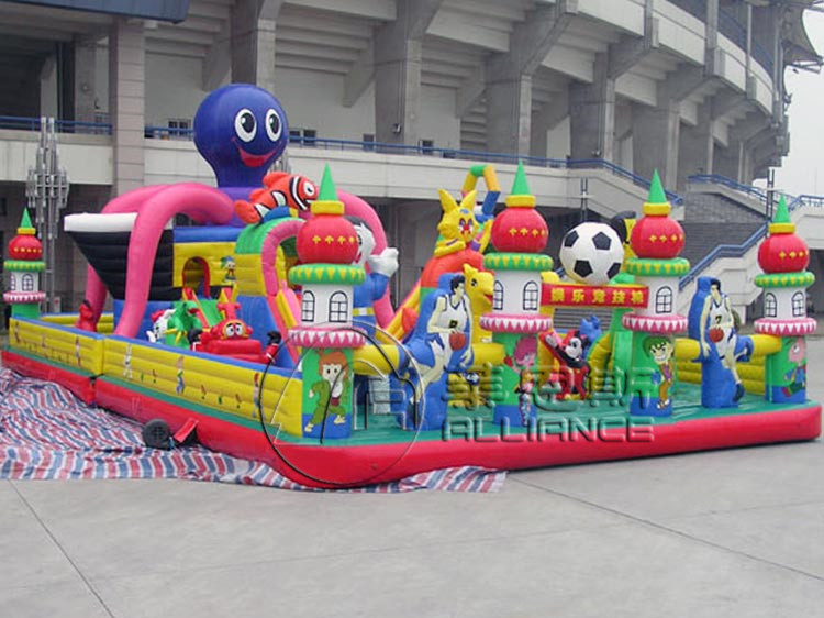 產(chǎn)品名稱:娛樂充氣競(jìng)技城產(chǎn)品規(guī)格:14*7*6.1m/15*8*6.1m/16*9*6.1m(長(zhǎng)*寬*高)產(chǎn)品材料:0.48±0.02mm環(huán)保夾網(wǎng)PVC配置:風(fēng)機(jī)、布料、膠水供氣方式:風(fēng)機(jī)連續(xù)供氣使用壽命:12-14萬人次保修期:產(chǎn)品整體提供三年質(zhì)量保障,三年內(nèi)免費(fèi)提供布料,膠水。業(yè)務(wù)經(jīng)理跟蹤服務(wù),幫助客戶解決經(jīng)營(yíng)中出現(xiàn)的疑難問題。產(chǎn)品描述: 娛樂充氣競(jìng)技城充氣城堡內(nèi)設(shè)有許多充氣卡通造型,在城堡后邊是一艘充氣海盜船,船頂是一只充氣大章魚,章魚爪已經(jīng)把船體包裹起來,整個(gè)造型非??蓯?,很吸引小朋友。適合人群: 適合3-12歲兒童。適用場(chǎng)地: 可用于城市廣場(chǎng)、公共休閑空地、公園、操場(chǎng)、景區(qū)、度假村、幼兒園學(xué)校等場(chǎng)地。溫馨提醒: 在購(gòu)買產(chǎn)品時(shí),您不但要考慮產(chǎn)品的價(jià)格,而且還要考慮產(chǎn)品的質(zhì)量,優(yōu)質(zhì)的材質(zhì)和工藝能提高產(chǎn)品安全保障和使用壽命!