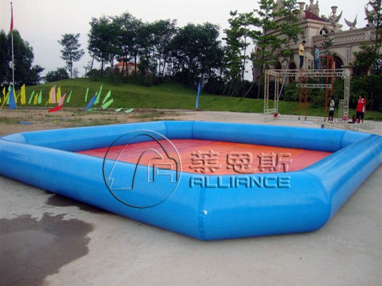 產(chǎn)品描述: 充氣水池采用0.85mm聚醚乙烯PVC夾網(wǎng)布料,材料無毒、無色、無味,對皮膚無刺激性,對兒童完全沒有傷害。耐寒性好,可達零下40度低溫,阻燃性好。具有抗磨損性高、抗撕裂性好、氣密性好、強度高、經(jīng)久耐用、維修方便等特點。充氣水池高度一般分為30cm、55cm、和80cm,一般規(guī)格為長方形,可以根據(jù)要求定制圓形、菱形等不同尺寸規(guī)格。充氣水池可在各種平整場地使用,安裝運輸快捷方便。